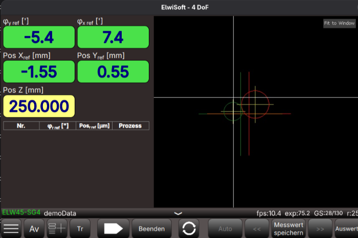 Ja, richtig gehört: Vier Freiheitsgrade (4 DoF) — in Winkelsekunden und Mikrometern — gleichzeitig erfassen, analysieren und dokumentieren.