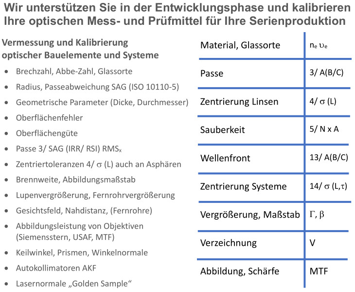 Messen / Kalibieren Optik